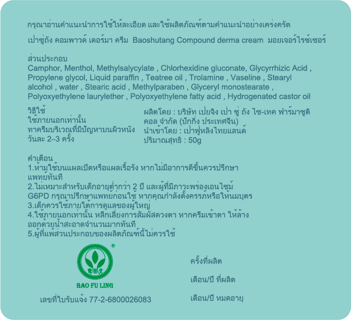 产品:เป่า ฟู หลิง เดอร์มาครีม BAO FU LING DERMA CREAM 50g(Thai Version)